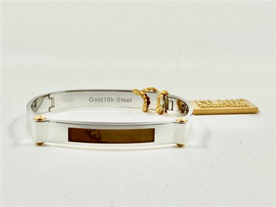 <p>BRACCIALE ALVIERO MARTINI CON PIASTRA STAMPA GEO VETRIFICATA EPARTICOLARI IN ORO 18 KT.</p>