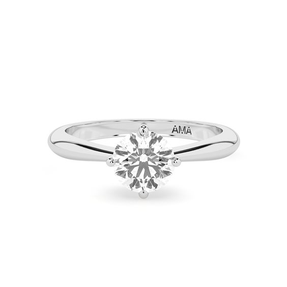 Questo anello realizzato in oro bianco riciclato 18 KT incastona 1 diamante AMA taglio brillante da 0.50 ct di colore E e purezza VS