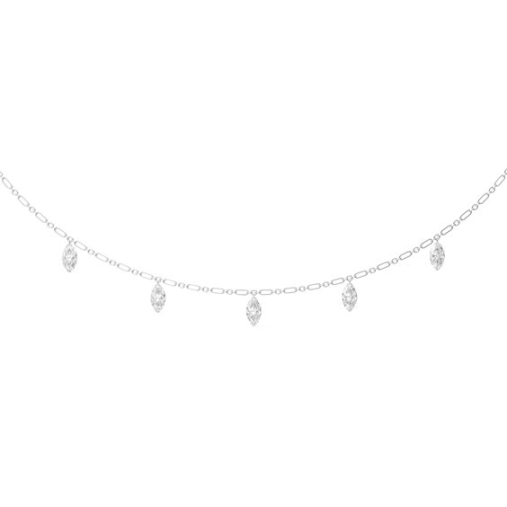 Questo girocollo realizzato in oro bianco riciclato 18 KT incastona 5 diamanti AMA taglio marquise con un foro per un totale di 1.53 ct Quando la luce diventa leggerezza ARIA è l’incontro tra femminilità contemporanea e design essenziale. Ogni dettaglio è studiato per liberare i diamanti, permettendo loro di risplendere, di catturare e rifrangere la luce come mai prima d’ora. Dove la leggerezza incontra l'eleganza, in un universo in cui i diamanti brillano di bellezza e responsabilità, nasce ARIA.