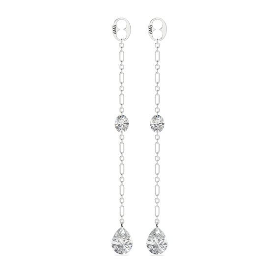 IL PENDENTE RICHIEDE L'APPLICAZIONE A UN ORECCHINO, ACQUISTABILE SEPARATAMENTE O COMPATIBILE CON ORECCHINI GIA' IN VOSTRO POSSESSO. Questi orecchini, realizzati in oro bianco riciclato 18 KT, hanno una lunghezza di 3 cm e incastonano 2 diamanti AMA taglio goccia con un foro e 2 diamanti AMA taglio ovale con doppio foro per una caratura totale di 2.76 ct Quando la luce diventa leggerezza ARIA è l’incontro tra femminilità contemporanea e design essenziale. Ogni dettaglio è studiato per liberare i diamanti, permettendo loro di risplendere, di catturare e rifrangere la luce come mai prima d’ora. Dove la leggerezza incontra l'eleganza, in un universo in cui i diamanti brillano di bellezza e responsabilità, nasce ARIA.