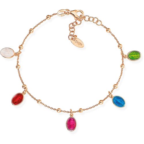 Bracciale Madonnine Smaltate Multicolor Amen della Collezione Miracolosa, Bracciale in argento - smalti colorati - Rosè - Lunghezza Catena Regolabile 16+3cm.