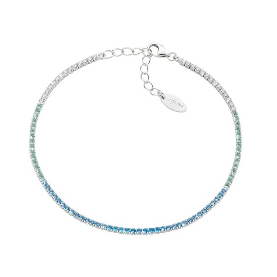 Bracciale in AG925 con zirconi multicolor acquamarina e bianchi - Rodiato - Lungh. 17 + 3 cm - zirconi Ø 1,5 mm