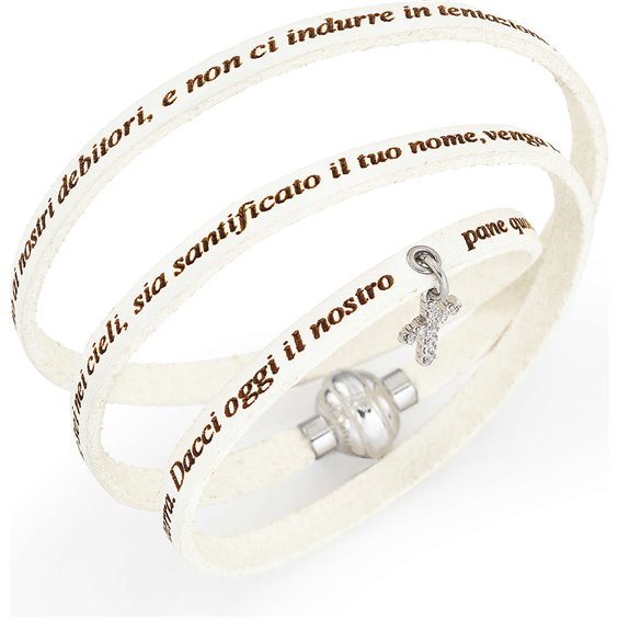 Bracciale Amen, con preghiera Padre Nostro con pendente a Croce con Swarovski, Lingua Italiano, Colore pelle Bracciale Bianco, Misura cm: 57