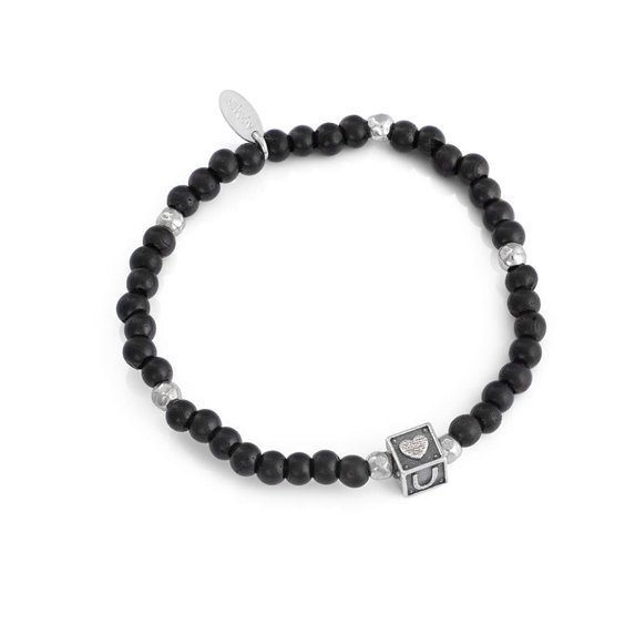 Bracciale Di Amen Della Collezione Ti Amo. Caratteristiche: I Love U, Bracciale Elastico In Argento E Ebano, Diametro 6 Cm. Questo Gioiello È Realizzato In Legno E Argento 925 Ed È Di Colore Rodio.