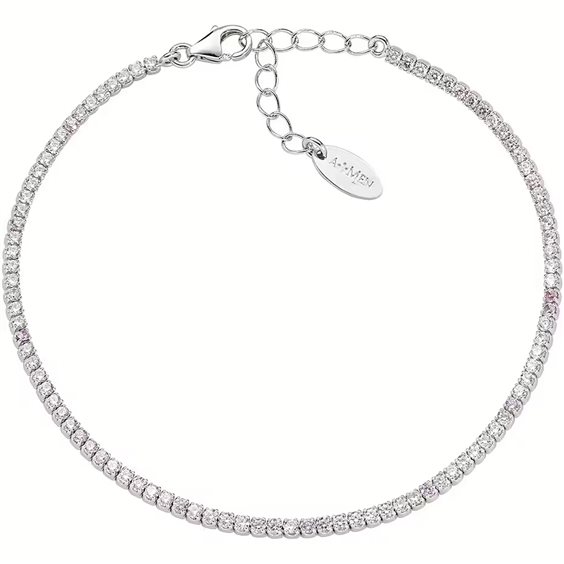 Argento con zirconi bianchi e rosa - Rodiato - zirconi Ø 1,5 mm - lungh. 17 + 3,5 cm