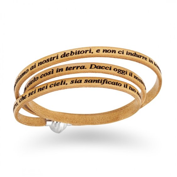 bracciale amen preghiera padre nostro in lingua italiano colore pelle beige misura bracciale 57 cm. CHIUSURA IN ACCIAIO CON CALAMITA