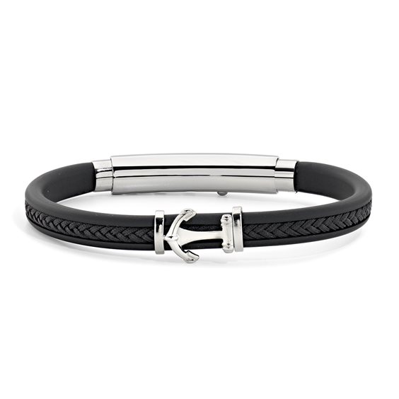 Bracciale da uomo di Amen della collezione Acciaio. Gioiello realizzato in Acciaio di colore acciaio lucido e caucciù nero e treccia in cotone nero. Lunghezza: 19 + 1 + 1 cm.