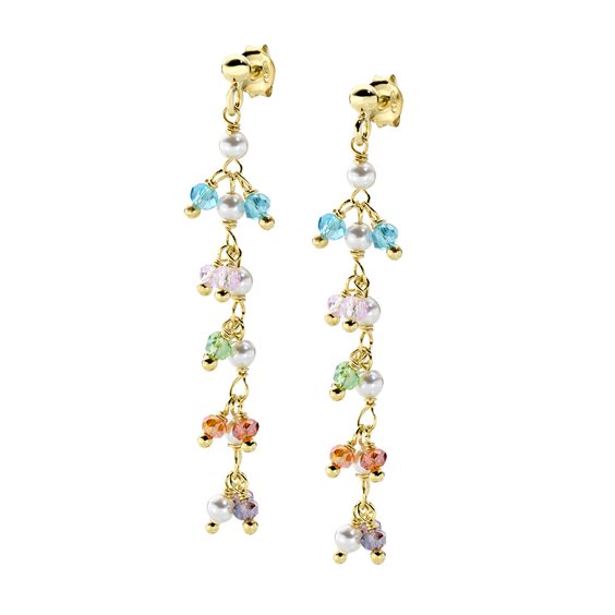 Orecchini in Argento 925 e finitura in Oro con perle e cristalli multicolore