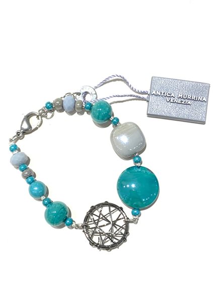 Bracciale con perle di Vetro di Murano con elementi in metallo anallergico brunito; misura polso personalizzabile da 18,5 a 20,5 cm