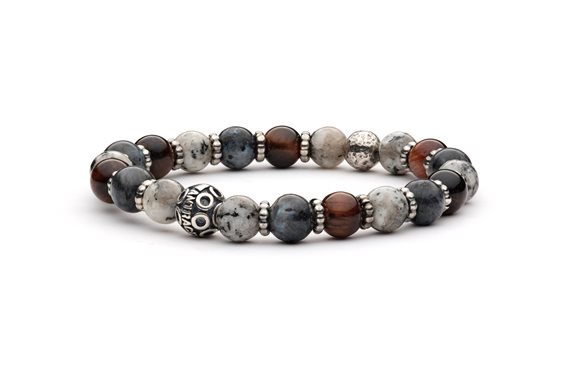 Bracciale in argento 925/°°° con labradorite bianca, grigia e occhio di tigre cioccolato. Le gemme si susseguono creando un perfetto ordine cromatico, reso originale unicamente dalle sfumature naturali della pietra. Tutti i gioielli della linea Big Chic sono identificati dalla sfera Antracite in argento 925/°°°. Gli elementi vengono infilati in un filo elastico in silicone molto resistente. Creazione artigianale, interamente realizzata a mano, 100% Made in Italy.