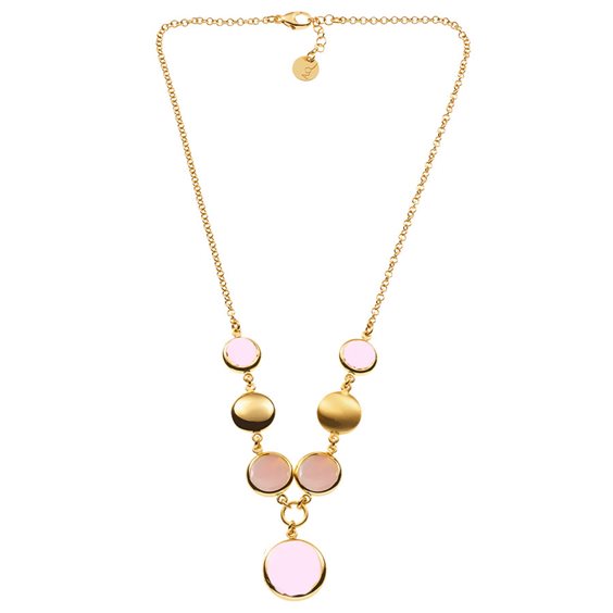 Collana in AG 925‰ placcato oro giallo 23 kt. con saponette e paste vitree rosa. Lunghezza Cm 41 + ext. argento 925/000 placcatura in oro giallo 23 carati rivestimento con speciale trattamento che protegge dalla naturale ossidazione del metallo orgogliosamente fatto a mano in Italia placcature rigorosamente senza alcun rilascio di nichel e cadmio comfort fit