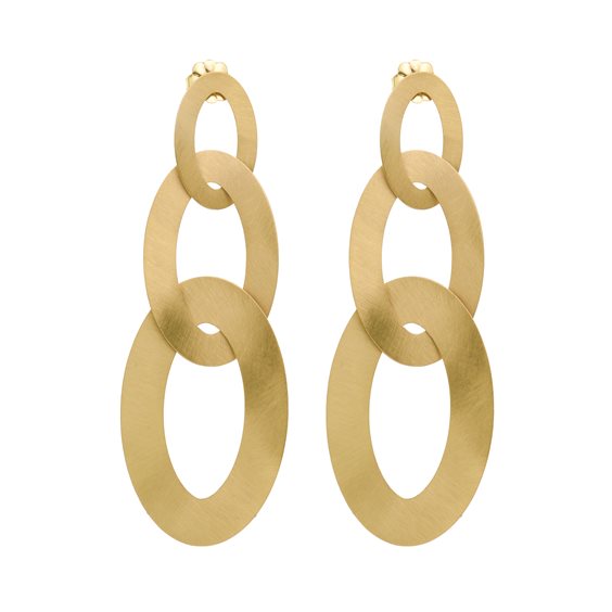 Maxi orecchini con elementi ovali intrecciati tagliati su foglio d’argento 925‰ placcato oro giallo 23 ct, satinati a mano argento 925/000 placcatura in oro giallo 23 carati rivestimento con speciale trattamento che protegge dalla naturale ossidazione del metallo orgogliosamente fatto a mano in Italia placcature rigorosamente senza alcun rilascio di nichel e cadmio comfort fit