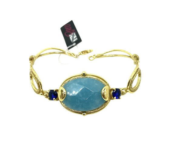 Bracciale in argento 925 placcato in oro 18 ct. con pietra pasta di turchese.