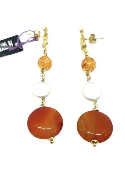 Orecchini in argento 925 placcato in oro giallo con pietre dure. Lavorazione a cera persa.