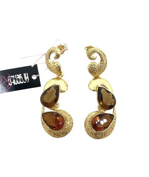 Orecchino in argento 925 placcato in oro giallo con topazio. Lavorazione a cera persa.
