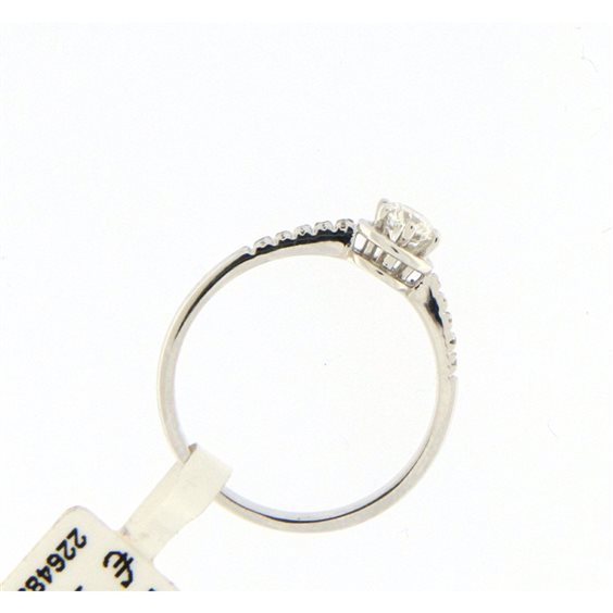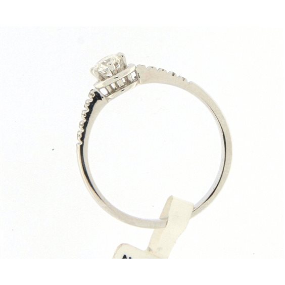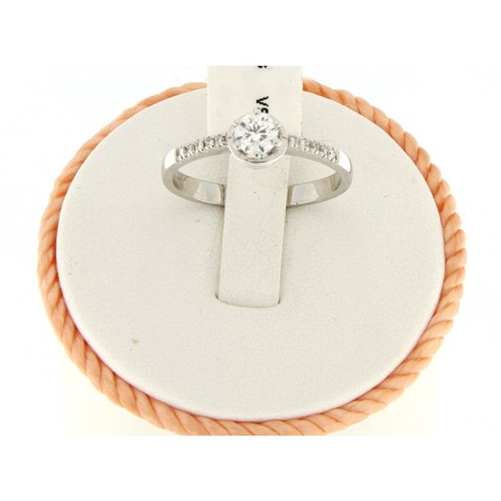 SOLITARIO IN ORO BIANCO CON PIETRA CENTRALE DI KT 0,30 G VS INCASTONATO A 6 PUNTE ,IMPREZIOSITO DA ALTRI BRILLANTI SUL GAMBO KT 0,06 . CERTIFICATO DI GARANZIA.