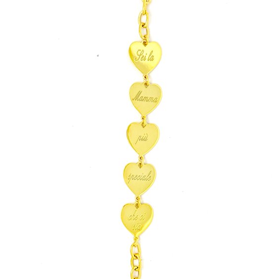 Un tributo d’amore, ogni cuore una parola, ogni dettaglio un abbraccio. Realizzato a mano con cura artigianale da Cikorefice Gioielli, questo bracciale multicuore è l’omaggio perfetto per celebrare la figura straordinaria di una mamma. Realizzato in argento 925 dorato, elegante e resistente, ogni singolo cuore – delicatamente modellato e lucidato a mano – porta incisa con precisione la dolce frase: “Sei la mamma migliore del mondo”. I cuori, disposti con armonia lungo la catena sottile e raffinata, si muovono con il movimento del polso come un sussurro costante d’amore. L’incisione, eseguita con tecnica tradizionale e precisione artigianale, non si affievolisce nel tempo: è un ricordo eterno, scolpito nell’argento come i ricordi più belli nella memoria. Ideale per la Festa della Mamma, il compleanno, o semplicemente per dire “ti amo” senza parole. Ogni bracciale è un pezzo unico, realizzato su ordinazione, con imballaggio elegante e confezione regalo inclusa – pronta per essere donata con il cuore.