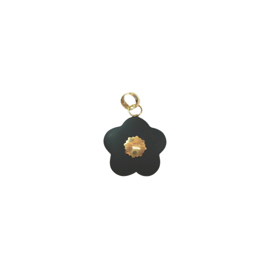 Ciondolo a fiore in oro giallo 18 carati ideato e realizzato da maestri orafi italiani, il ciondolo è realizzato in cristallo sintetico, lunghezza 2,9 centimetri compreso l'occhiello.