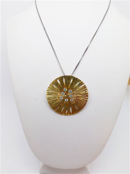 VIOLANTE ARGENTO Girocollo sole con zirconi, argento 925 in bagno oro giallo 24 kt. Catena maglia veneta argento 925 rodiato, chiusura con moschettone. Gioiello anallergico, nichel free.