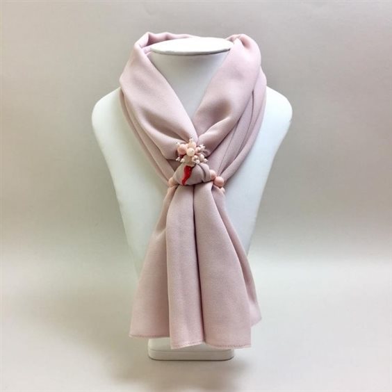 Foulard Donna Colore Rosa con Pietre Dure e fermaglio lavorazione artigianale unico nel suo genere. Made in Italy Tessuto: 95% Poliestere 5% Seta 95% Poliestere, 5% Seta Ciondolo di Pietre Dure: Giada Coreana Cristalli Ramo di Corallo Rosso Lunghezza: 75 cm piegata