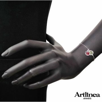 BRACCIALE ARTLINEA IN ARGENTO CON COCCINELLA PENDENTE E QUADRIFOGLIO CM15,5 PIù CM3 CATENA DI ALLUNGO