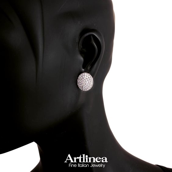 Orecchini Artlinea ovale in argento 925 rodiato con pavé di zirconi bianchi.