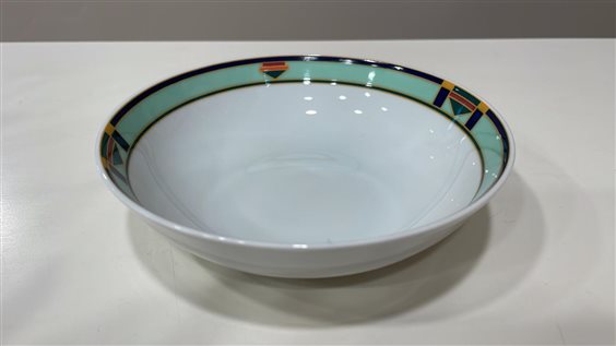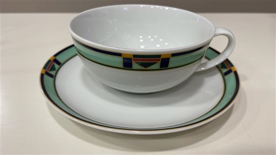 Lunga tradizione, design inconfondibile e massima qualità rendono Arzberg così particolare. Il marchio è sinonimo di grande stile. Un design senza tempo e ottima qualità dei prodotti: tipico di Arzberg. Da oltre ottant’anni la firma di questo popolare designer caratterizza le amate forme di queste porcellane, che vengono regolarmente insignite di numerosi premi internazionali di design e vendute con successo in tutto il mondo. La modellatura pregiata delle forme è da sempre il fulcro di Arzberg. Gettando lo sguardo sugli sviluppi e sulle tendenze future, lo stile del tempo non viene intuito, ma rimodellato. Dall’interazione di forme interessanti e pratica funzione nascono prodotti armoniosi a cui non è più possibile rinunciare, anche perché ci si identifica immediatamente con loro in maniera indissolubile. SERVIZIO PIATTI ARZBERG IN PORCELLANA BIANCO CON DECORI GEOMETRICI VERDE, ARANCIO E BLU COMPOSTO DA 83 PEZZI DI CUI: SERVIZIO TAVOLA 41 PEZZI: -12 PIATTI PIANI (25cm) -12 PIATTI FONDI (23cm) -12 PIATTI FRUTTA -1 ZUPPIERA -1 RAVIERA -1 INSALATIERA -1 PIATTO TONDO DA PORTATA -1 PIATTO OVALE DA PORTATA SERVIZIO CAFFE' 15 PEZZI: -1 CAFFETTIERA -1 ZUCCHERIERA -1 LATTIERA -12 TAZZE CAFFE' CON PIATTINO SERVIZIO THE 15 PEZZI: -1 THEIERA (h18cm x 25cm) -1 ZUCCHERIERA -1 LATTIERA -12 TAZZE (5.5cm) THE CON PIATTINO (14.5cm) 12 COPPETTE MACEDONIA (13.5cm)