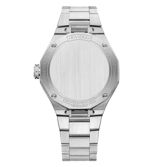 Riviera 10614 OROLOGIO AL QUARZO, DATARIO, DIAMANTI - 36 MM Animato da un movimento al quarzo “Swiss Made”, questo Riviera è ornato da un quadrante argentato e accompagnato da un bracciale in metallo. Fedele al design originale, mantiene la lunetta dodecagonale, l’esclusivo decoro e il sistema di intercambiabilità del cinturino. Un segnatempo di carattere per una personalità decisa.