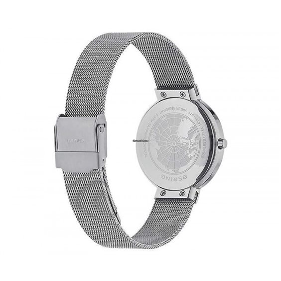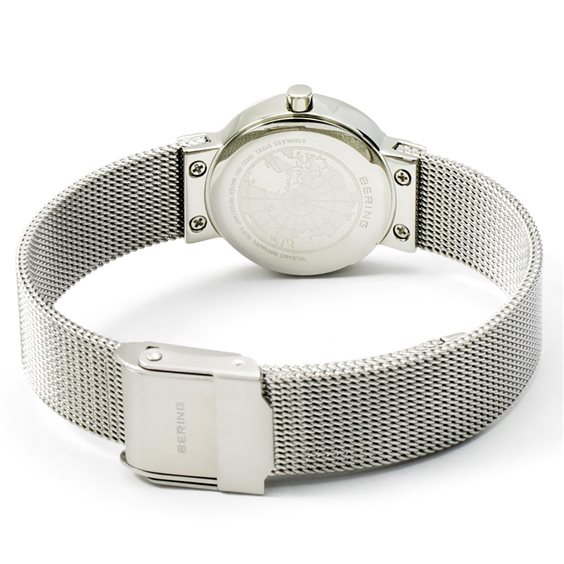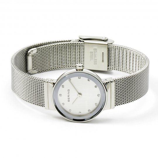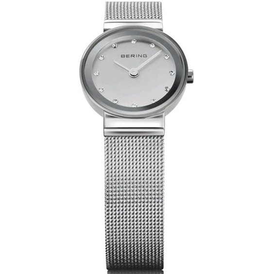 Orologio solo tempo da donna di Bering della collezione classic. Orologio con cassa della dimensione di 22 mm, di colore argento brillante e realizzata in acciaio inox. Modello con cinturino in acciaio, realizzato in maglia Milano, con chiusura a scatto. Questo orologio ha quadrante color argento spazzolato, con vetro zaffiro. Modello con movimento al quarzo e resistenza all'acqua di 3 atm. Caratteristiche aggiuntive: pietre crIsitalli, 3 anni di garanzia.