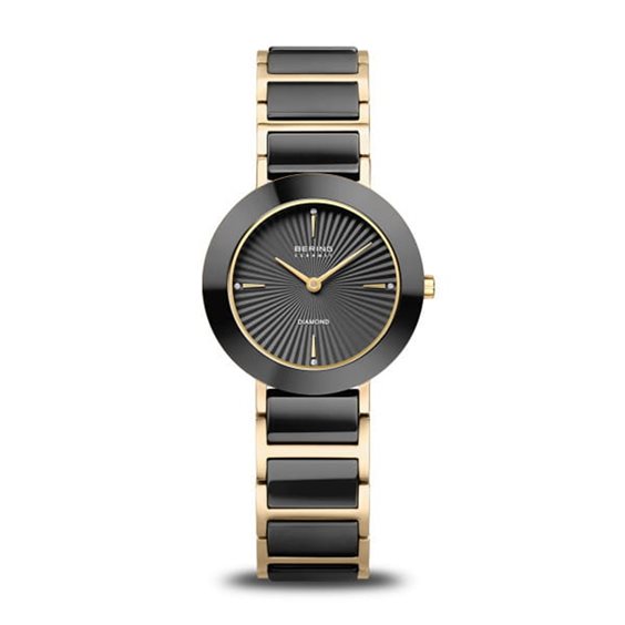 Nella sua collezione di ceramiche high-tech Slim Ceramic, BERING presenta orologi in un design estremamente sottile. La struttura superficiale fluida del materiale qui si fonde idealmente con il design semplice e snello degli orologi. Il risultato è una bellezza senza tempo nella sua forma più snella. La ceramica high-tech è un materiale con proprietà uniche. Oltre all'elevata resistenza ai graffi, la ceramica high-tech è molto leggera, resistente al calore e antiallergica. La superficie super liscia conferisce al materiale il suo unico "Tocco Liscio" e quindi garantisce una sensazione inconfondibilmente confortevole. È un processo produttivo altamente impegnativo e che richiede molto tempo, il che rende la ceramica high-tech così preziosa. Collezione: Ceramico Tipo di prodotto: orologio Genere: femmina Tipo di vetro: Cristallo piatto di zaffiro Tipo di movimento: quarzo Colore della cassa: Oro lucidato Materiale del caso: acciaio inossidabile Lunghezza del case: 35 mm Altezza del bossolo: 6 mm Larghezza del case: 29 mm Tipo di caso: rotondo Colore della cunicola: nero Materiale del cornice: ceramico Colore della cinghia: multicolore Materiale della cinghia: cinghia in acciaio inox con anelli in ceramica Lunghezza della cinghia: 150 mm Larghezza della cinghia: 15 mm Fermaglio: farfalla Materiale del link: ceramica, acciaio inossidabile Colore del quadrante: nero Materiale del quadrante: diamante Impermeabilità: 5 bancomat