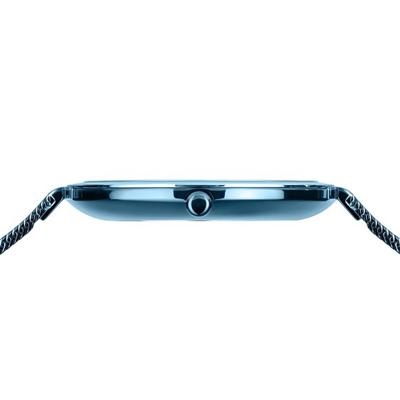 Orologio Bering donna. Cassa in acciaio blu brillante, diametro di 32mm, quadrante blu brillante. Cinturino a maglia milano in acciaio blu brillante. Impermeabilità fino a 3 ATM.
