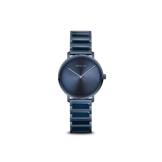 Orologio Bering donna. Cassa in acciaio blu, diametro di 31mm, quadrante blu. Cinturino in acciaio blu con inserti in ceramica blu. Impermeabilità fino a 5 ATM.