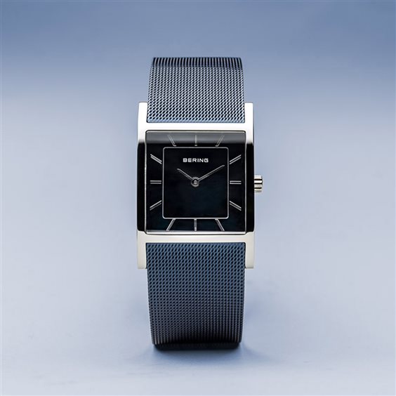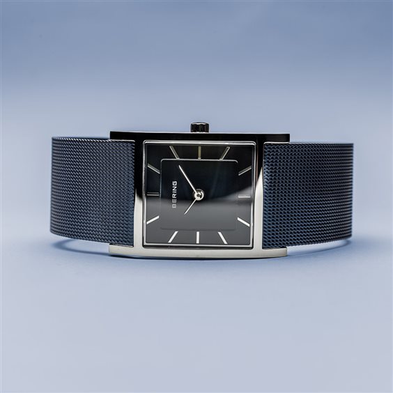 Classico, purista, eppure eccitante. Stile perfetto combinato al minimalismo contemporaneo. Ispirata al design danese, la COLLEZIONE CLASSIC presenta un orologio unico, creato per dare un tocco di stile al look quotidiano. La cassa rettangolare in acciaio inox (316L), finitura brillante, insieme al moderno cinturino in maglia Milanese in tinta col quadrante, realizzano il classico look BERING. Il quadrante in madreperla blu è protetto da un vetro zaffiro antigraffio. Garanzia 3 anni.
