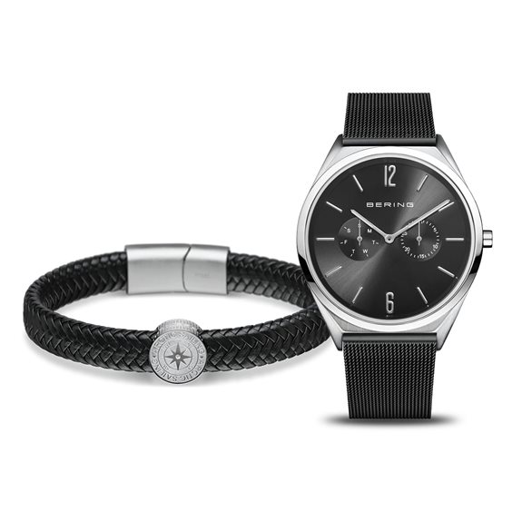Orologio Bering Ultra Slim. Vetro Zaffiro. Bracciale in acciao maglia Milano nera. Confezione regalo con bracciale in omaggio