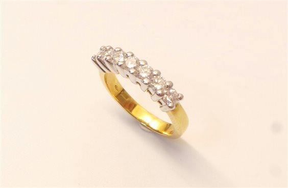 Anello donna Bibigi in oro giallo 750% con montatura diamanti in oro bianco (7 diamanti taglio brillante ct. tot. 0,70).Misura 13 modificabile. Scatola Originale Certificato di garanzia del negozio.