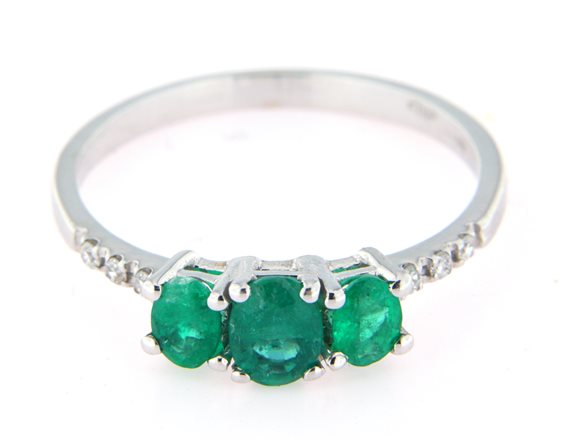 ANELLO TRILOGY MISURA 13 ORO BIANCO 750 CON DIAMANTI 0,04 CARATI E SMERALDI 0,64 CARATI. PESO 1,99 GR
