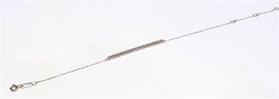 Bracciale tennis Bibigi' in oro bianco 750/1000 con catena cm 22 e diamanti taglio brillante ct 0.24 , col. G , purezza SI , gr 2.8 . Certificato d'autenticita' Bibigi' .