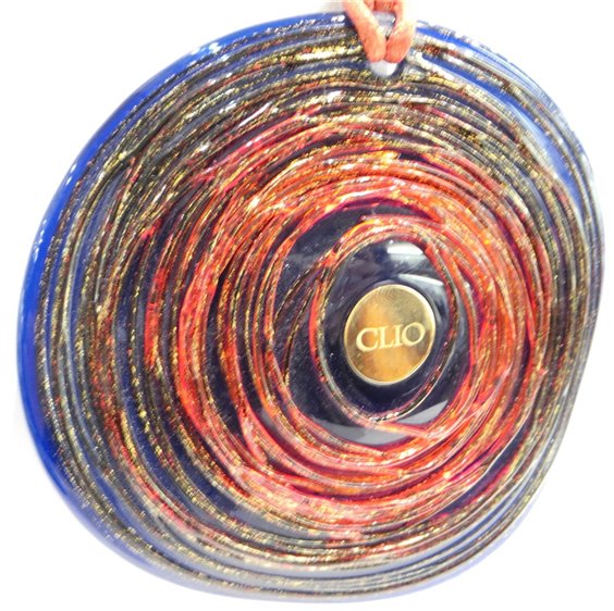 Meraviglioso pendente "Chakra" in vetro di Murano , Fornace Cenedese misura diametro cm 8,5 con punto centrale in oro giallo 18 kt e cordino regolabile in filo cerato rosso regolabile. Marca Bibigi'.