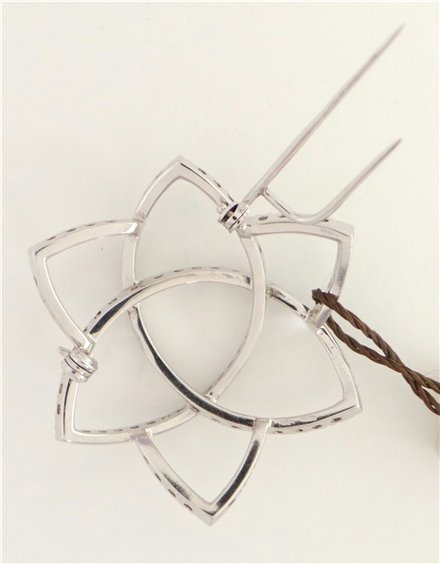 Spilla in oro 18 kt con disegno geometrico gr 12,40 con brillanti caratura totale 0,85 colore G , dimensioni cm 4 . Marca BIBIGI .