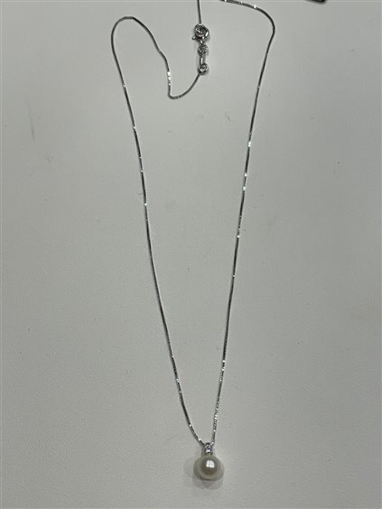 COLLANA BLISS IN ORO BIANCO KT 18 CON PENDENTE PERLA ACQUA SALATA MM 6/6.5 CON BRILLANTE KT 0.03 H. MISURA COLLANA 42 CM.