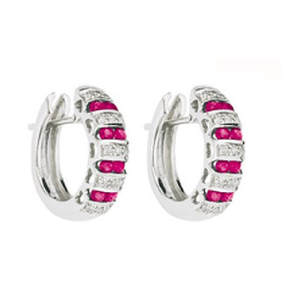 orecchini a cerchio della linea cabaret con rubuni ct. 0,57 e diamanti ct. 0,15