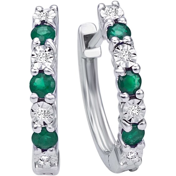 orecchini in oro bianco 750 con diamanti kt 0.03 e smeraldi kt 0.30. chiusura a clip