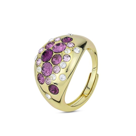 Anello placcato oro giallo, regolabile, con decoro centrale di cristalli crystal e light ametist