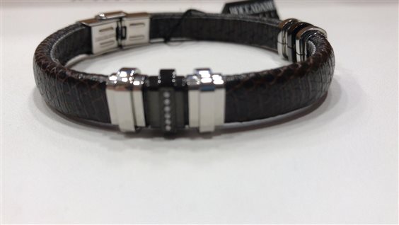 BRACCIALE BOCCADAMO UOMO IN PELLE MARRONE CON INSERTI E CHIUSURA IN ACCIAIO.