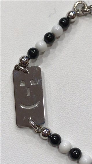 BRACCIALE BOCCADAMO UOMO IN ARGENTO CON PALLINE BIANCHE E NERE E TARGHETTA CENTRALE,CHIUSURA MOSCHETTONE.