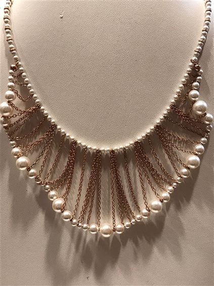 COLLANA BOCCADAMO DONNA IN ARGENTO ROSATO CON PERLE SWAROVSKI BIANCHE MISURA 40 CM ESTENBILE A 45 CM.