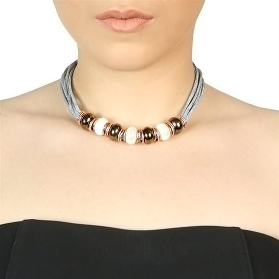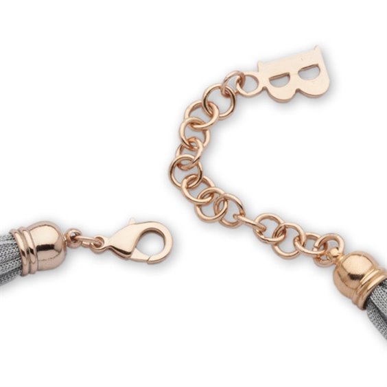BOCCADAMO, collana in bronzo rosato e cristalli semisferici bianchi e marroni, maglia bracciale multifilo tipo seta LUNGHEZZA. cm 40 allungabile con anellini finali di ulteriori 5cm. DIMENSIONI: cristalli diametro mm15.