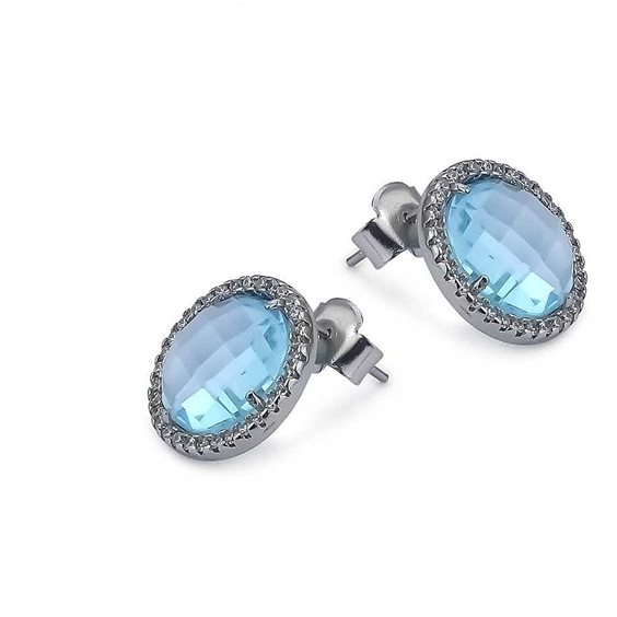 Orecchini Da Donna Di Boccadamo Della Collezione Sharada Della Linea Mediterranea. Orecchini A Lobo In Bronzo Rodiato Con Cristallo Acquamarina E Zirconi. Materiale: Bronzo. Produzione: Realizzato In Italia. Dimensione: Diametro Cristallo Cm 1,5. Chiusura: