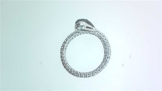 Anello a forma di serpente a 3 spire in oro bianco 18Kr con diamanti taglio brillante bianchi e neri. La montatura gode di una particolare elasticità data da una sottilissima anima in titanio con memoria di forma