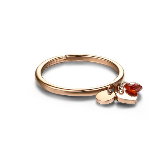 Anello Cuori Rosè e Cristalli Rossi Materiale: acciaio ipoallergenico e inossidabile Disponibile in 2 misure regolabili misura 15 (regolabile fino alla misura 17)